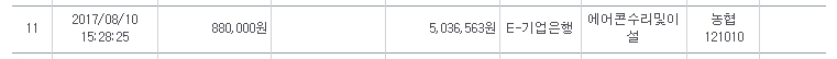 소요비용 : 에어컨 2대(기보유장비) + 이전설치비+배관설비+냉매(880,000원) = 880,000원