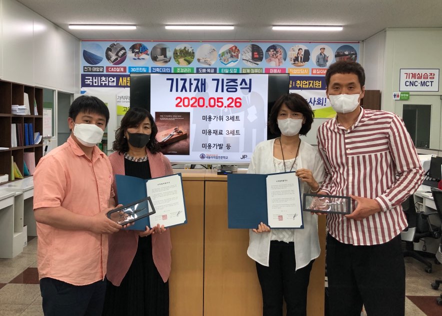 산학협력체결식과 훈련생들의 기능향상을 위한 미용장비 기증식이 함께 실시되었습니다.