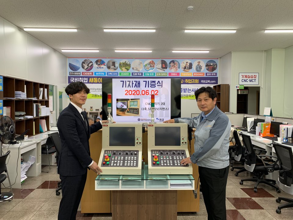 산학협력체결식과 훈련생들의 기능향상을 위한 CNC조작기비 기증식이 함께 실시되었습니다.