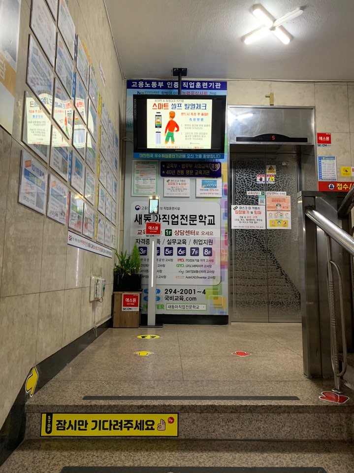 1. 등교시 전체 교육생은 학교 입구에서 스마트 발열검사 실시 (출입시간외에는 입구 통제)