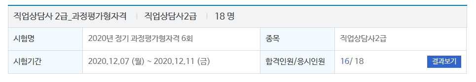 2020년도 과정평가형 직업상담사 2급 과정의 합격자 발표!!