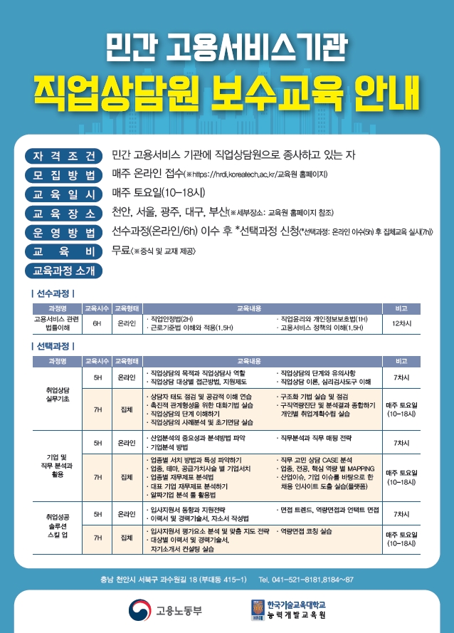 부산을 대표하는 새동아직업전문학교가 고용노동부 민간 고용서비스기관 직업상담원 보수교육장소로 지정되었습니다.