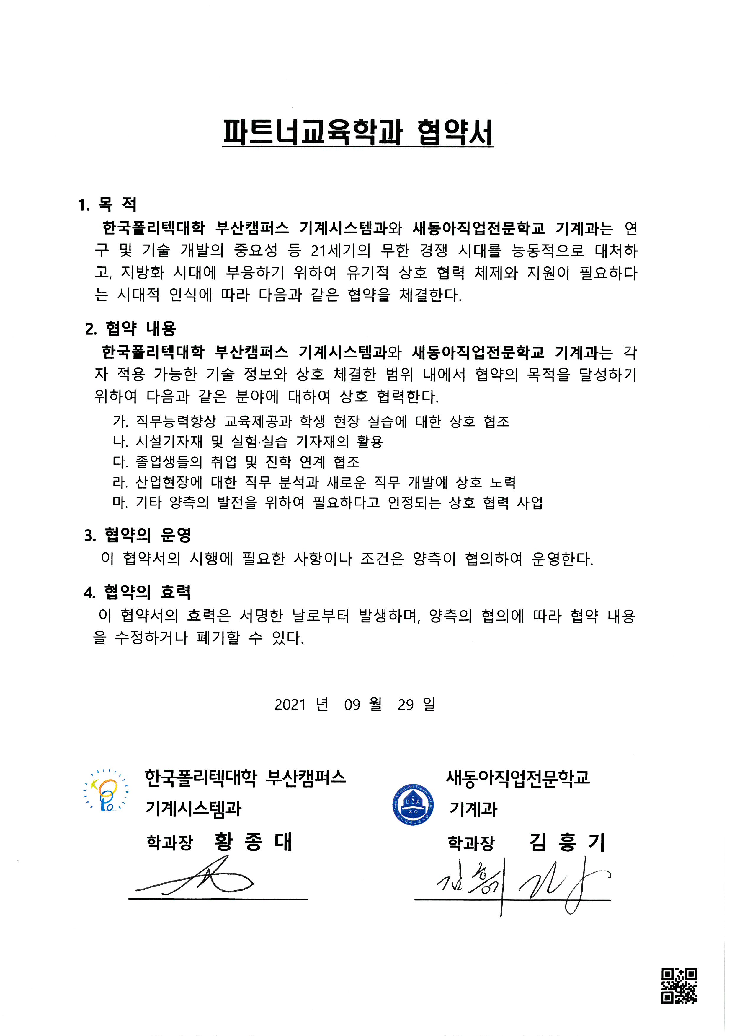[협약] 부산폴리텍 기계시스템학과 협약체결